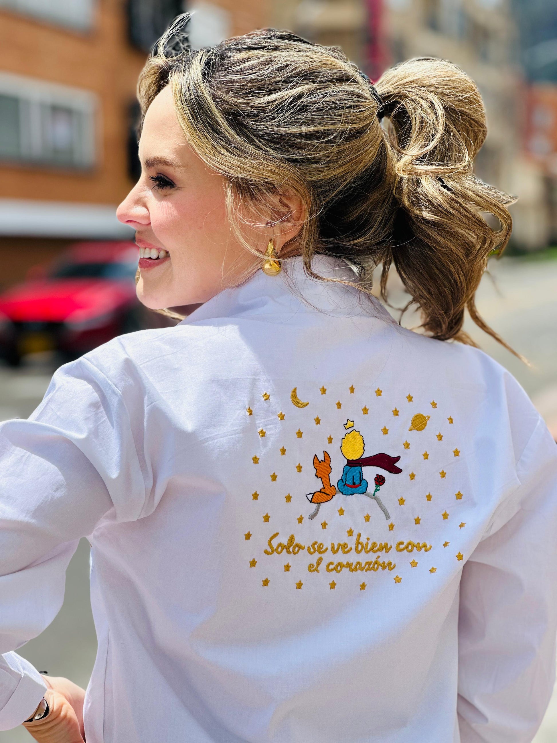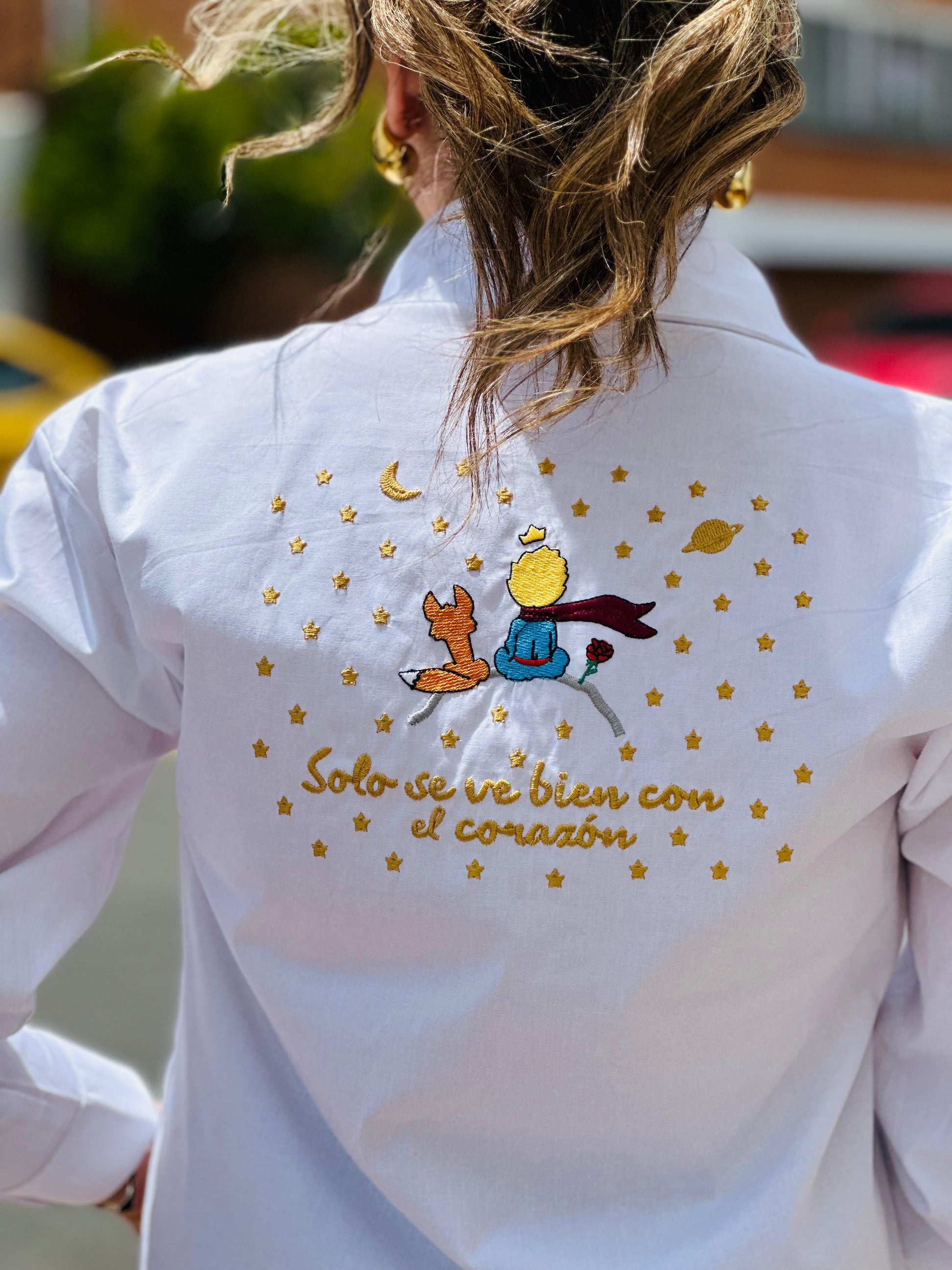 Camisa bordada ..."Solo se ve bien con el corazón"... Es un si definitivo en tu closet!