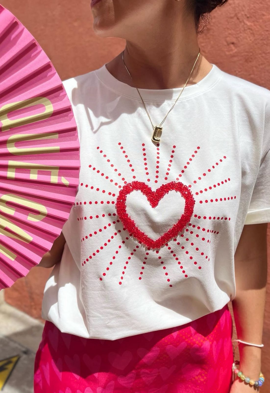 Camiseta en algodón 100% Colombiano con pedrería de corazón.