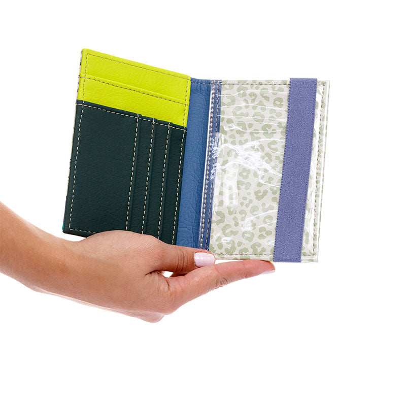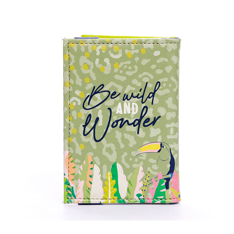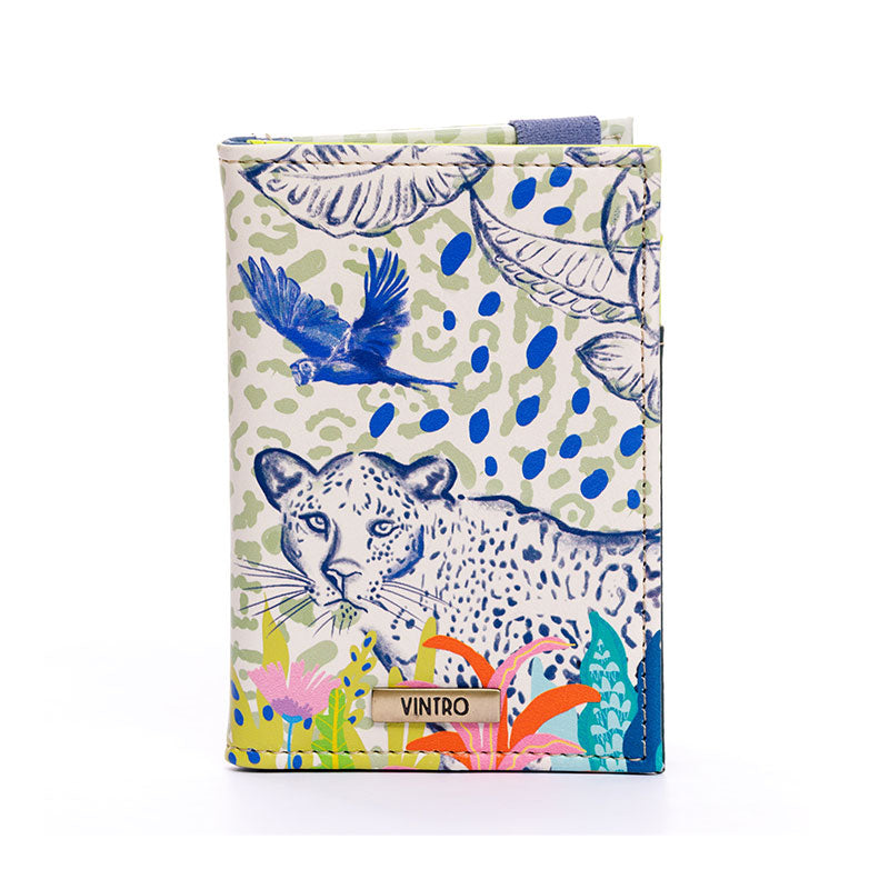 Viajar nunca habia sido tan divertido con nuestro porta-pasaporte estampado de la colección Paraiso Salvaje. Interior con compartimientos estampados y material vinilo, exterior en cuero vegano 100% colombiano.